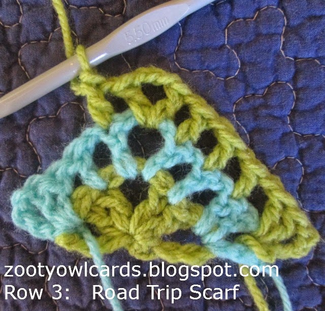 A few crocheters seem to be having a bit of difficulty with the triangle concept for the ROAD TRIP SCARF – so this version is written with more detailed explanations on how to start, getting from row to row, and some useful notes, etc, so that EVERYBODY on the planet can have a Road Trip Scarf!!!