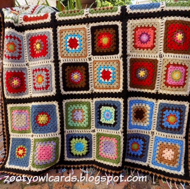 DeleteYour blanket is really beautiful and such a good way to use up your yarn and your enforced hours of darkness. I try to crochet as often as possible when I'm ravelling as a passenger in the car. A lot of the time the journeys are in darkness so I crochet Granny square blankets. I tried a straight Granny blanket and it worked out great.