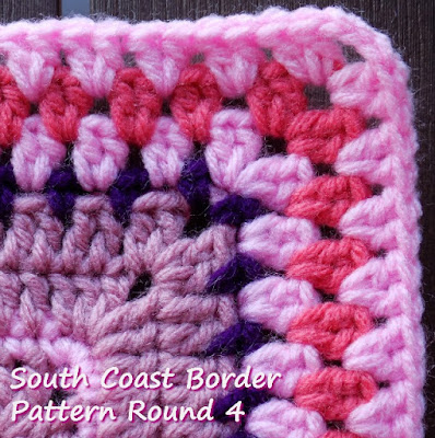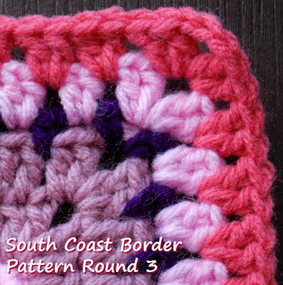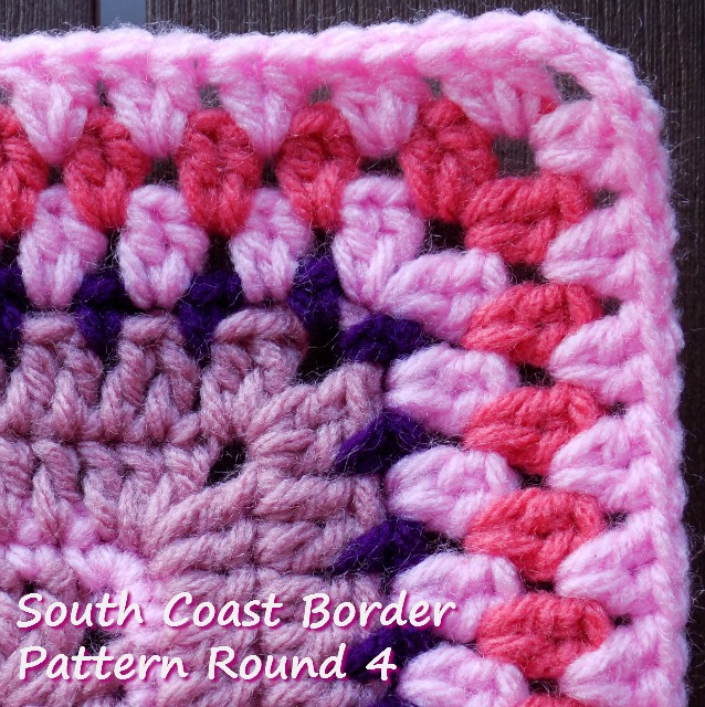Note: The border should lay flat. If you find your border "ruffling" you may have too many stitches. Extra stitches are usually picked up over a join - make sure that you only have 3 stitches at each join - 1 in the first corner space, 1 into the join and 1 in the 2nd corner space. Skip the first stitch after working into the 2nd corner space. Switch to a smaller hook - if you used a 4.00mm try a 3.50mm or a 3.00mm