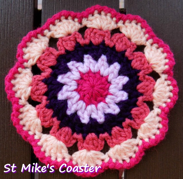 For the bonus coaster pattern I have added a border and edging to the circular part of the St Michael's-on-Sea Square.   (Note:   this pattern is an optional extra and is not incorporated into the Seaside Winter Blanket)