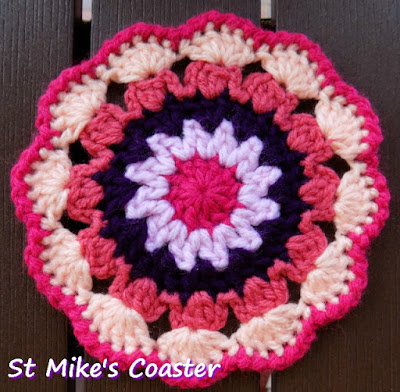 Follow the link provided, work up Rounds 1 - 4 of the ST MICHAEL'S-ON-SEA SQUARE  and then come back here to complete the coaster.