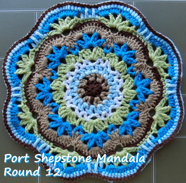 I added a few rows to the Port Shepstone centre to make a matching mandala. The Mandala is not part of the Seaside Winter Blanket and is an optional extra.